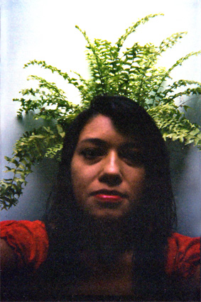 Primer plano. Autorretrato. Poca iluminación imagen captada en el jardín interior de la residencia de la autora.