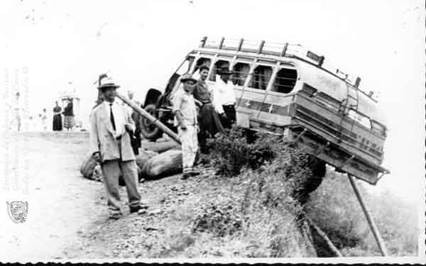 Bus escalera accidentado en la carretera. Toro, 1956