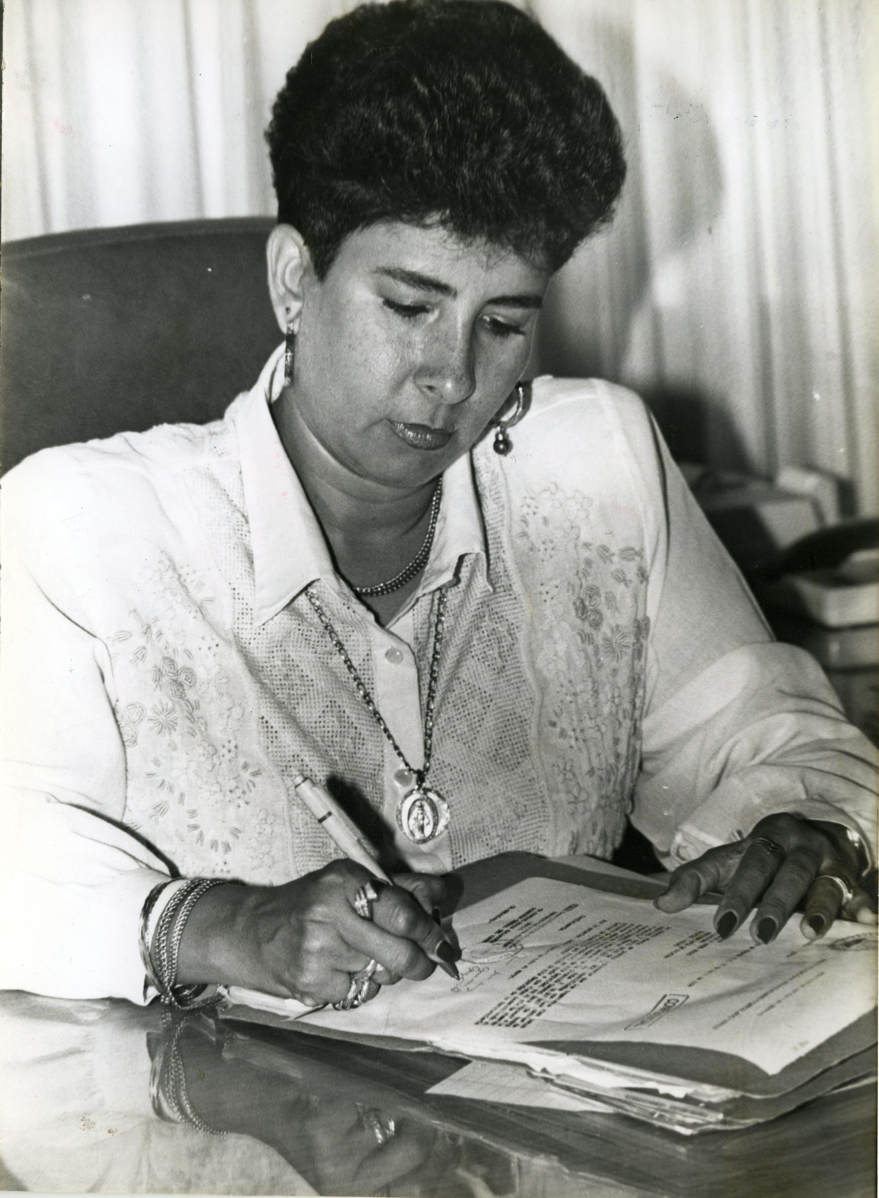 Retrato de Aracelly Ángel Rojas, Directora de la penitenciaría de Palmira, firmando unos papeles.