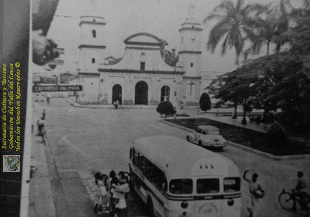 Capilla antigua de estilo colonial en la plaza principal de El Cerrito, 1956.