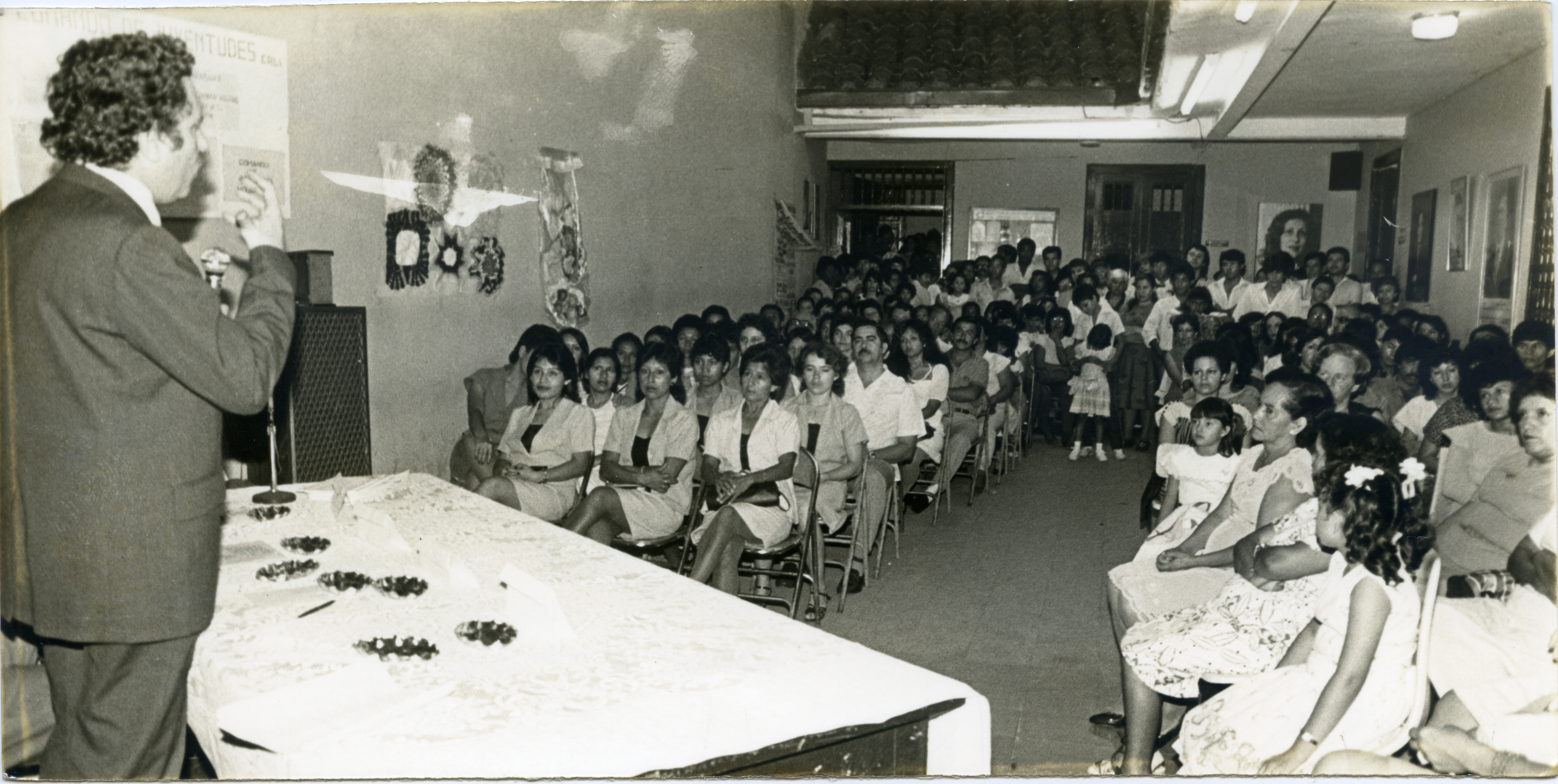 En la fotografía podemos observar a Carlos Holguín Sardi dirigiéndose a sus seguidores vallecaucanos, los cuales lo escuchan con mucha atención.