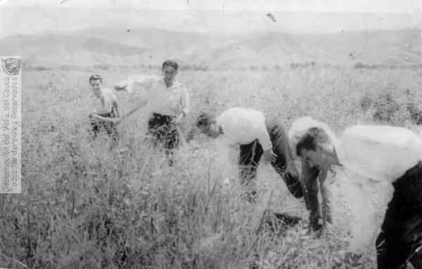 s. n., s. n. & s. n. (1959). Grupo de personas realizando trabajos de limpieza con machetes de la pista del aeropuerto cuando esta era en tierra & 600827. CARTAGO: Biblioteca Departamental Jorge Garces Borrero.
