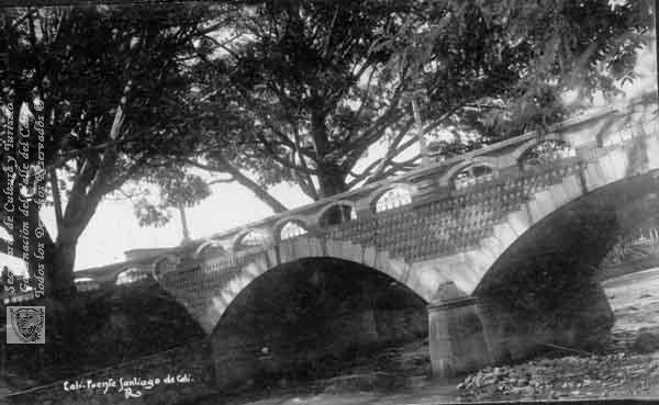Pedro A. Riascos (1950). Puente Santiago de Cali sobre el río & 501053. OTRO: Biblioteca Departamental Jorge Garces Borrero.