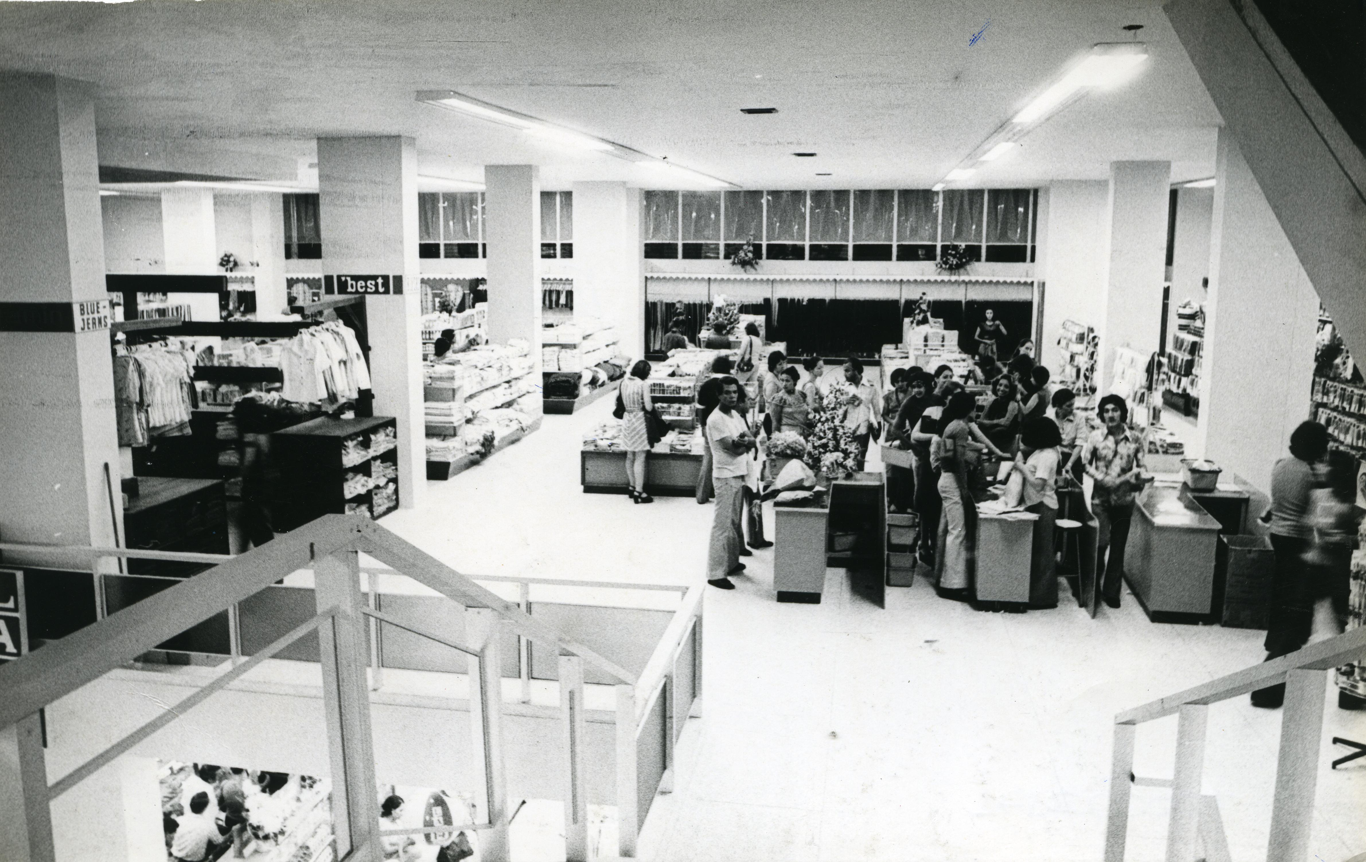 Almacenes la 14 fue fundada en Cali en 1964 por Abel Cardona Franco en la calle 14 del centro de la ciudad de ahí el origen de su nombre siendo originalmente una cacharrería. Su oferta comercial se desarrollaba a través de formatos de gran superficie y de tiendas de cercanía. Se aprecia gente pagando en la caja en el interior del almacén