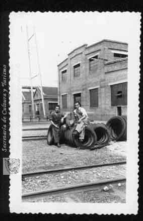 Carlos Eduardo Millán y compañero, en las bodegas de Chipichape. Santiago de Cali, 1942.