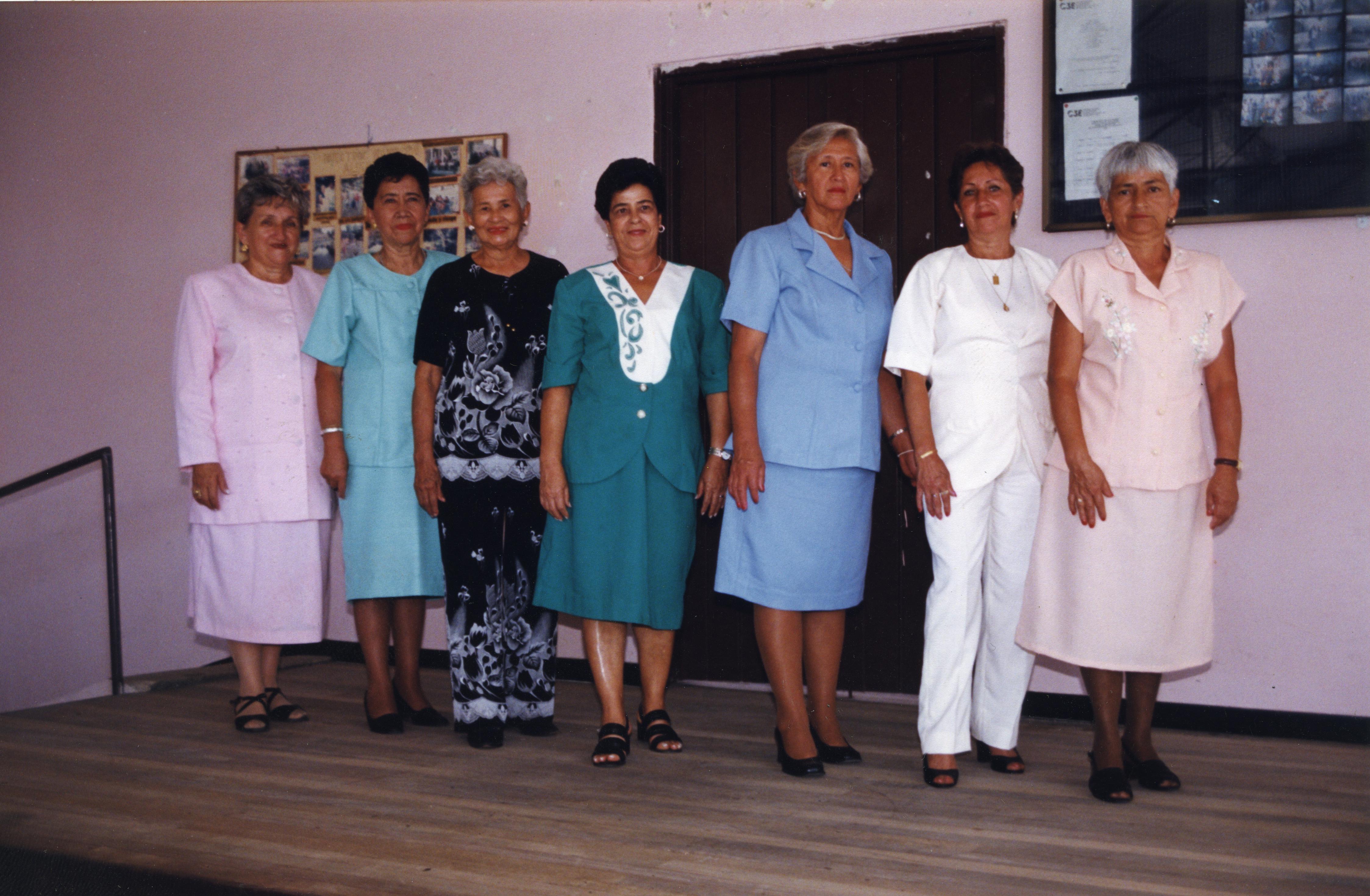 En la gráfica se aprecia grupo femenino de la tercera edad. Celina Castaño de Montoya, Cleotilde Mejía de Valencia, Cartago, María Teresa Barrios, Caicedonia, María del Rosario Salazar, Roldanillo, María Luisa Rendón, San Pedro, Luz Alba Sabogal, Yumbo, Rubi Roman Buritica, La Victoria