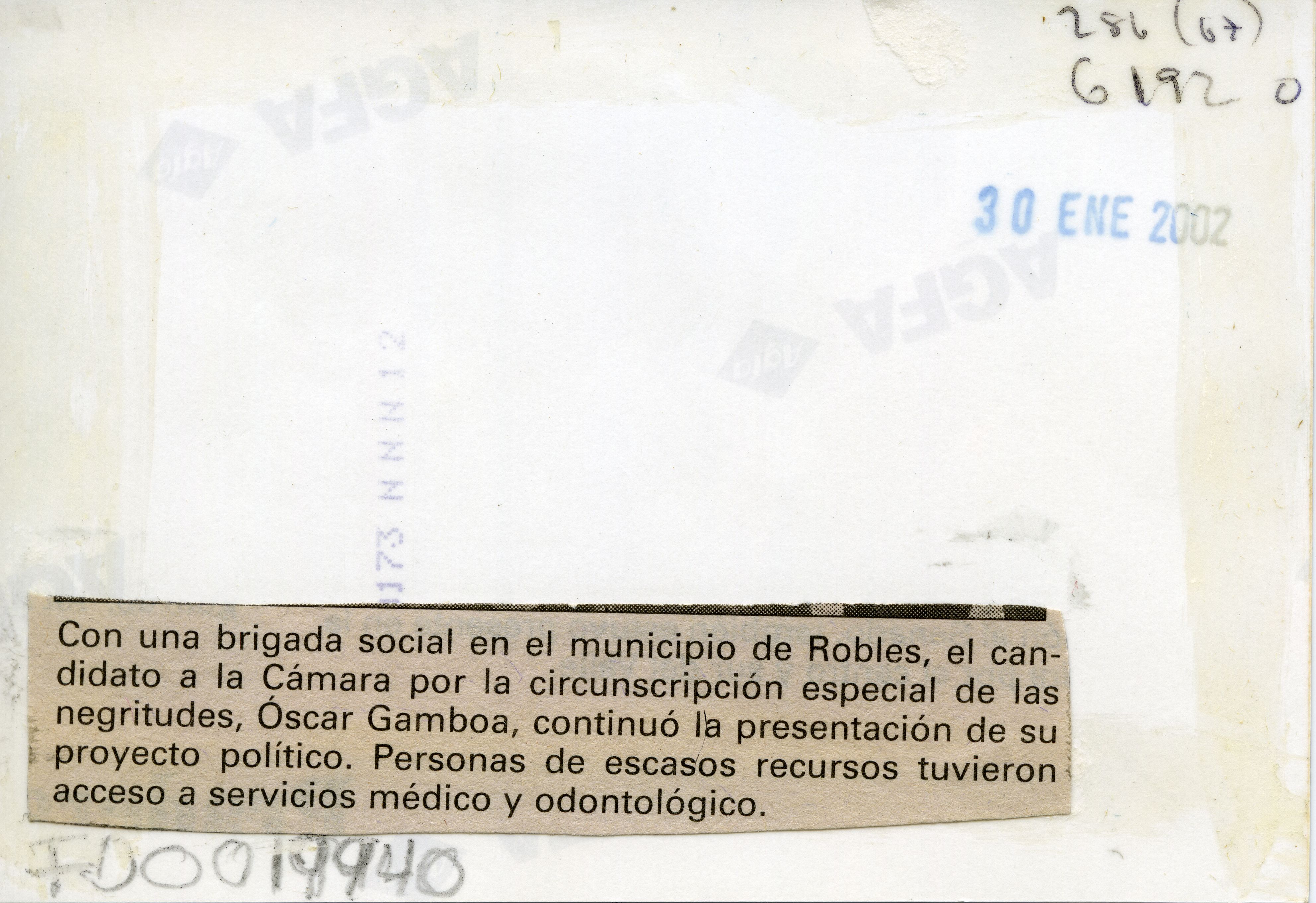 Con una brigada social en el corregimiento de Robles, el candidato a la cámara por la circunscripción especial de las negritudes, Oscar Gamboa, continuo la presentación de su proyecto político. Personas de escasos recursos tuvieron acceso a servicios Médicos y odontológicos