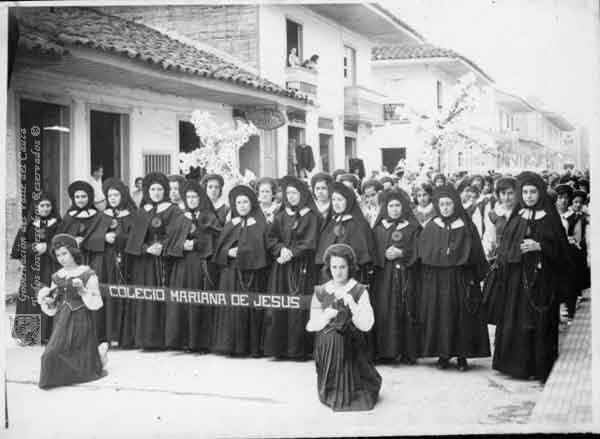 s. n. & s. n. (1940). Desfile de alumnas y monjas del Colegio Santa Mariana de Jesús que funcionaba en la carrera 8a calles 13 y 14, lugar donde fue fundado & 101647. SEVILLA: Biblioteca Departamental Jorge Garces Borrero.
