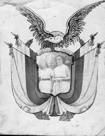 Fotomontaje llamativo realizado para las hermanas Nelly y Flor María Ramírez; Sus fotos se encuentran en la parte central del Escudo Nacional de la República de Colombial
