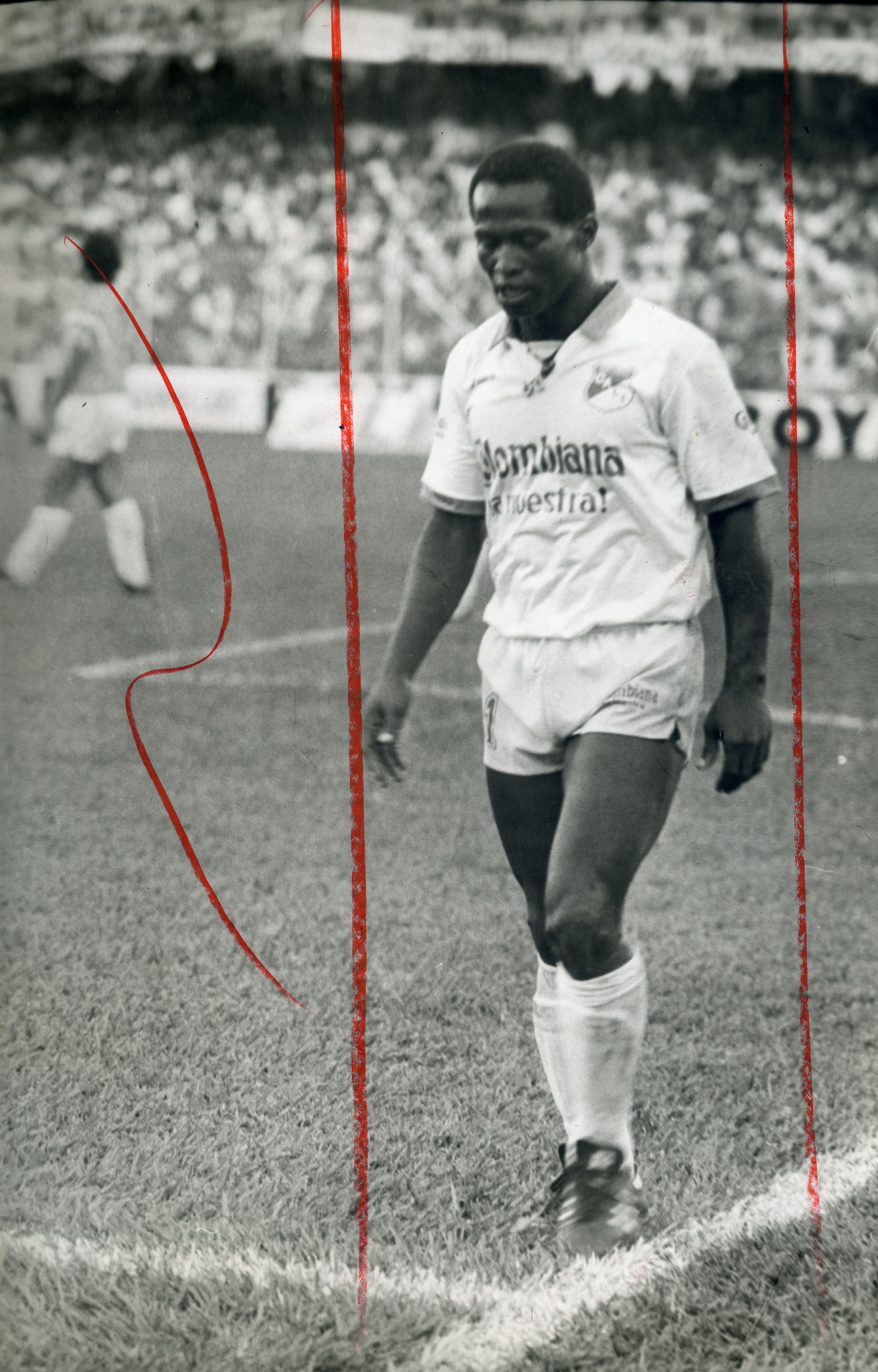 Félix Cetré jugador importante del Deportivo Cali. Se aprecia al jugador en calentamiento
