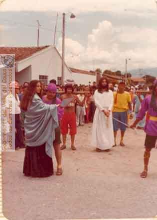 Procesión del Viacrucis en vivo por las calle de la ciudad, durante la semana santa de 1979. Florida.
