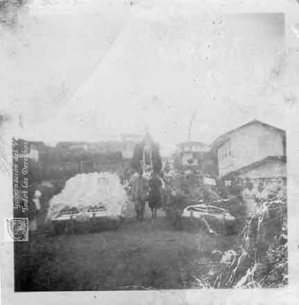 Entrada de la Virgen de la carroza de motoristas. Restrepo, C. 1950