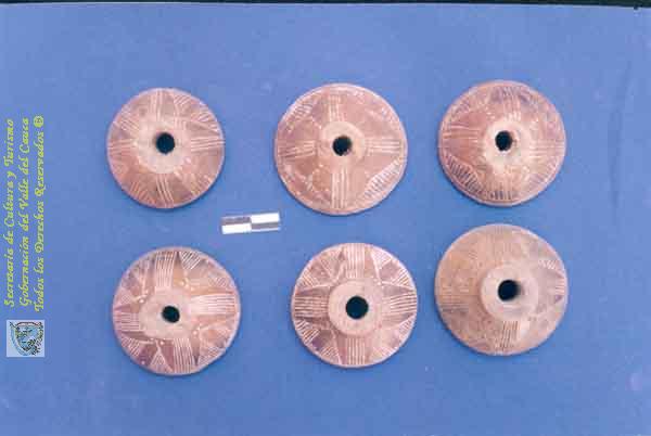 Volantes de huso precolombinos, hallados en la vereda La Marina. Argelia.