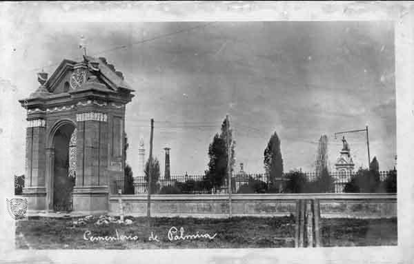 Entrada principal al cementerio central de la ciudad.Palmira, 1954.