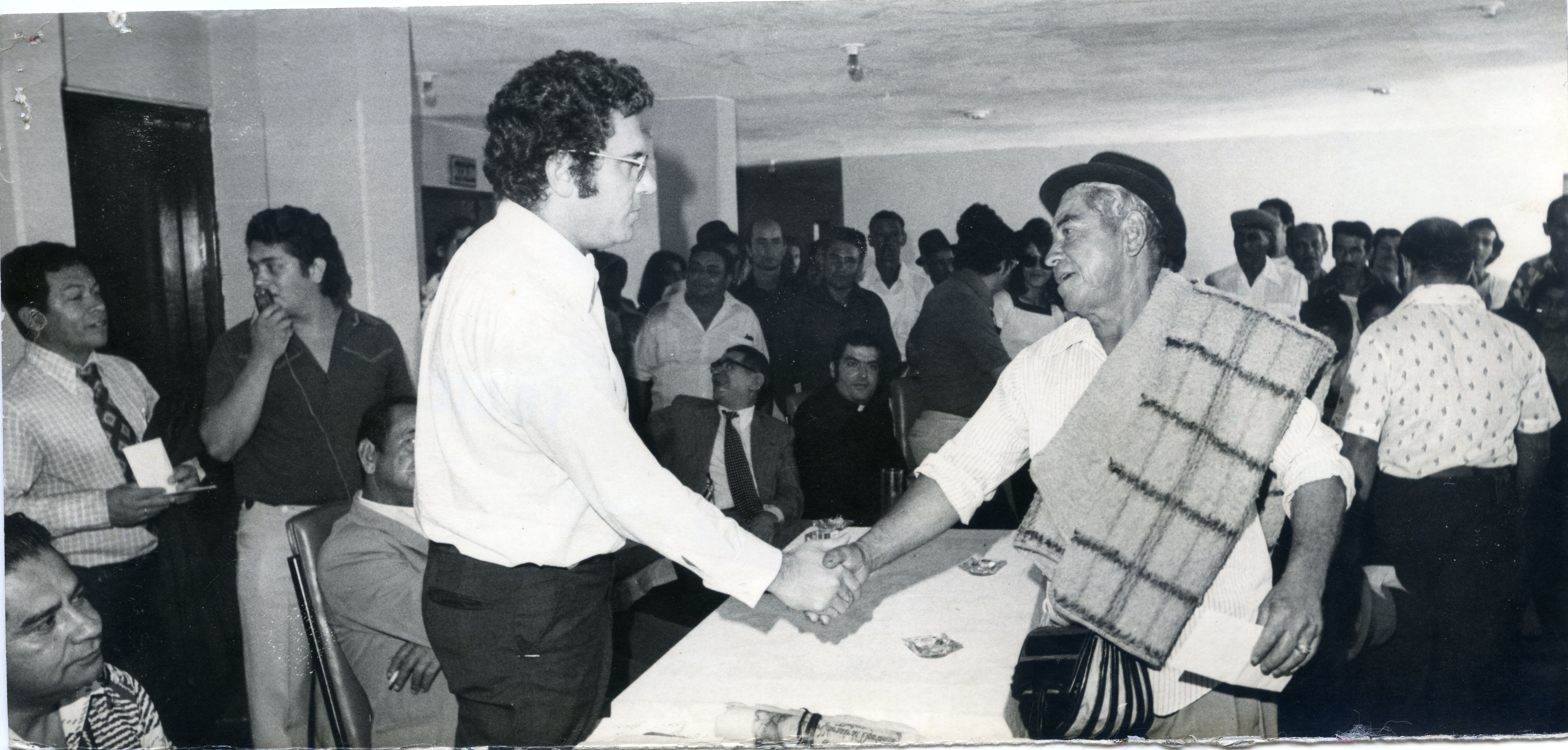 En la fotografía podemos observar a Carlos Holguín Sardi junto a otras personas, en lo que parece ser una importante reunión.
