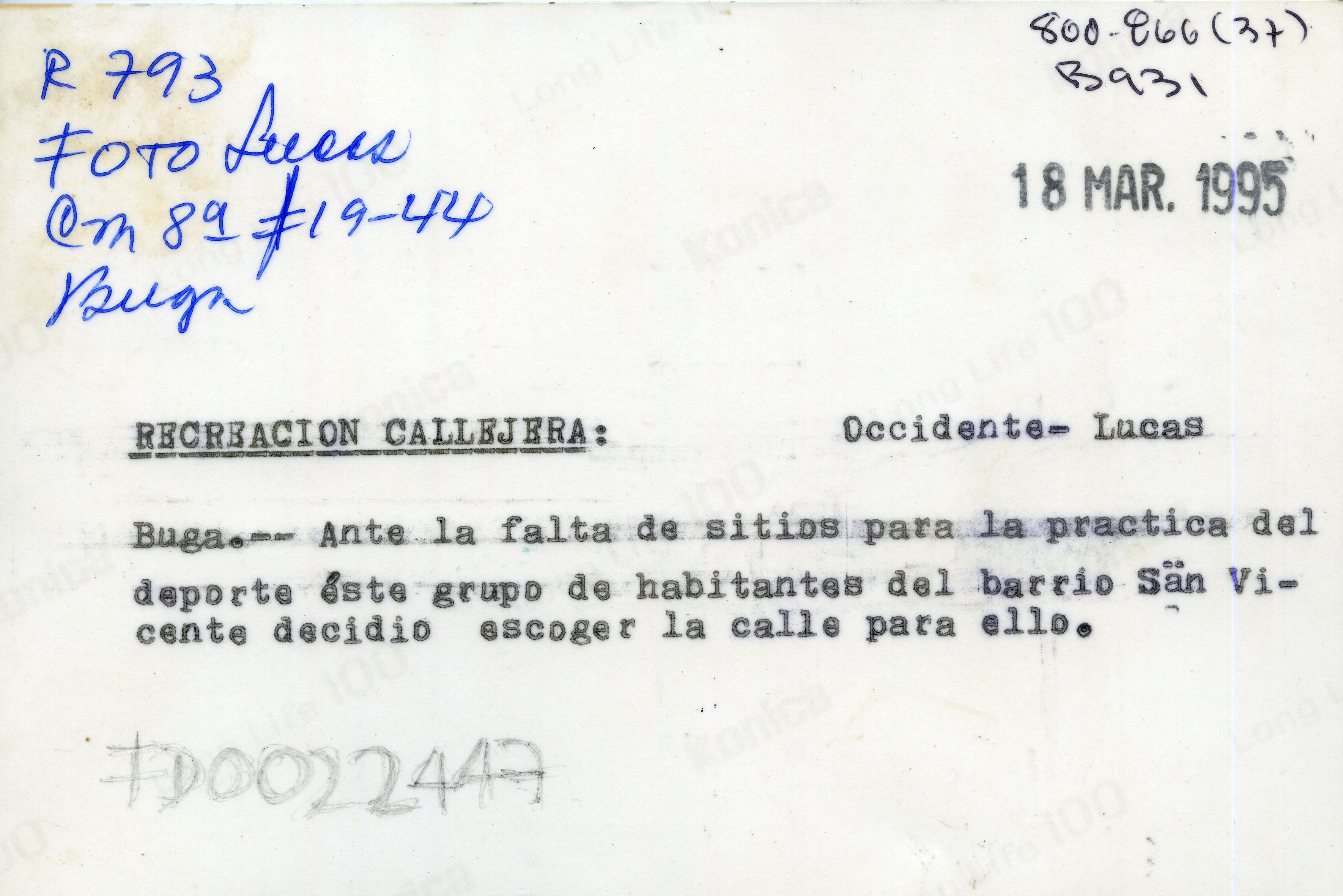 Ante la falta de sitios para la práctica del deporte éste grupo de Habitantes del barrio San Vicente decidio escoger la calle para ello. Se aprecia grupo de mujeres jugando fútbol