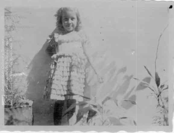 Dándose un baño de sol, luciendo el traje adecuado para las niñas de la época. Santiago de Cali, 1948.