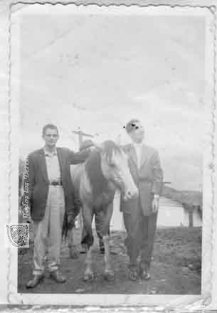 Leonardo Clavijo y el Profesor Conrado López. La elegancia y el buen vestir toque de distinción de las familias prestantes del Muncipio. El Aguila 1956.