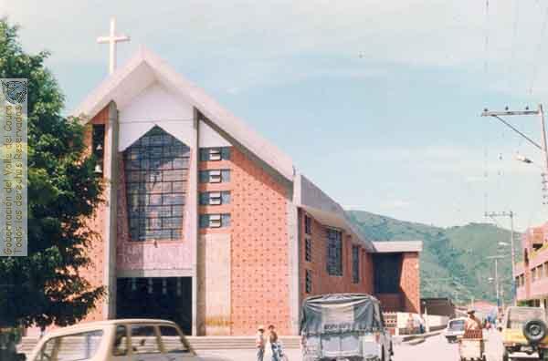 HECTOR JAIME RESTREPO (1990). Vista frontal del Templo San Serbastian ubicado en una esquina de la plaza principal & 602218. ROLDANILLO: Biblioteca Departamental Jorge Garces Borrero.