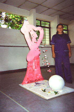 Martínez Torres, N. C. (2005). En la imagen tomada en el interior del colegio José Manuel Saavedra se puede apreciar el plano medio de una estudiante en una exposición artística sobre el tema relacionado con la drogadicción. Santiago de Cali: Biblioteca Departamental Jorge Garces Borrero.