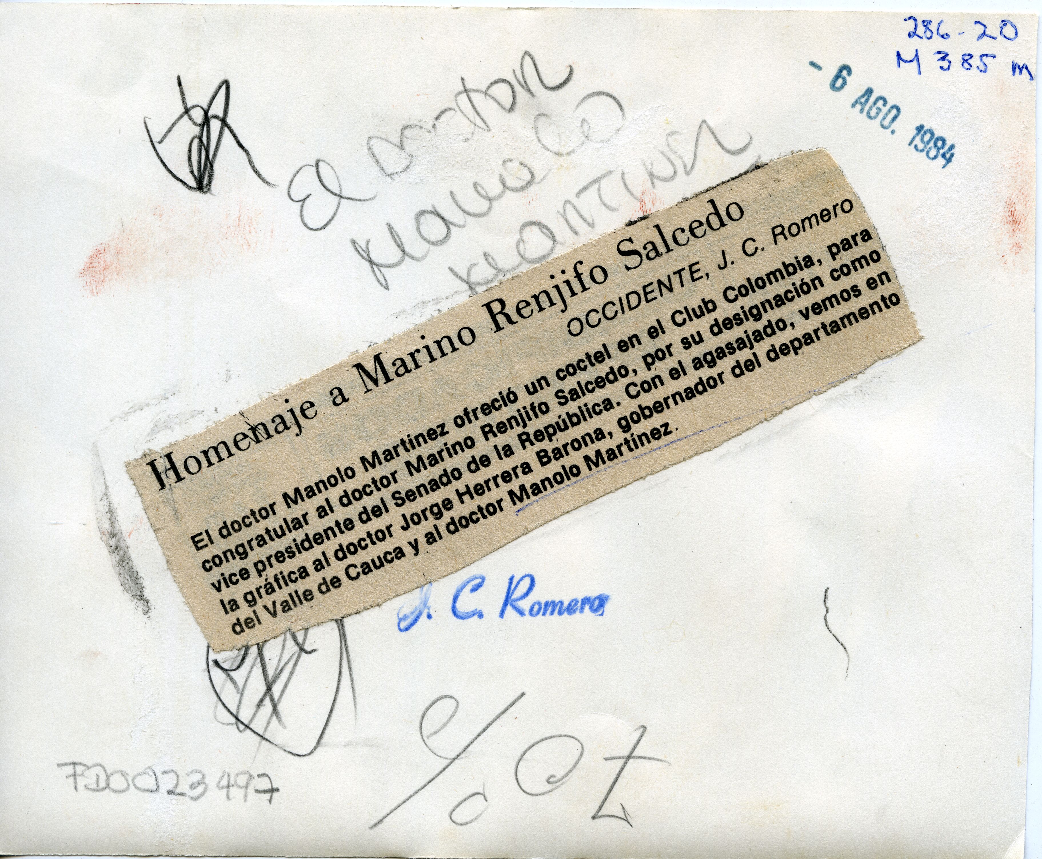 | dc.description.abstract | En la gráfica aparecen: Jorge Herrera Barona, gobernador del departamento del Valle del Cauca, el doctor Manolo Martínez y el gobernante Marino Renjifo Salcedo | spa |