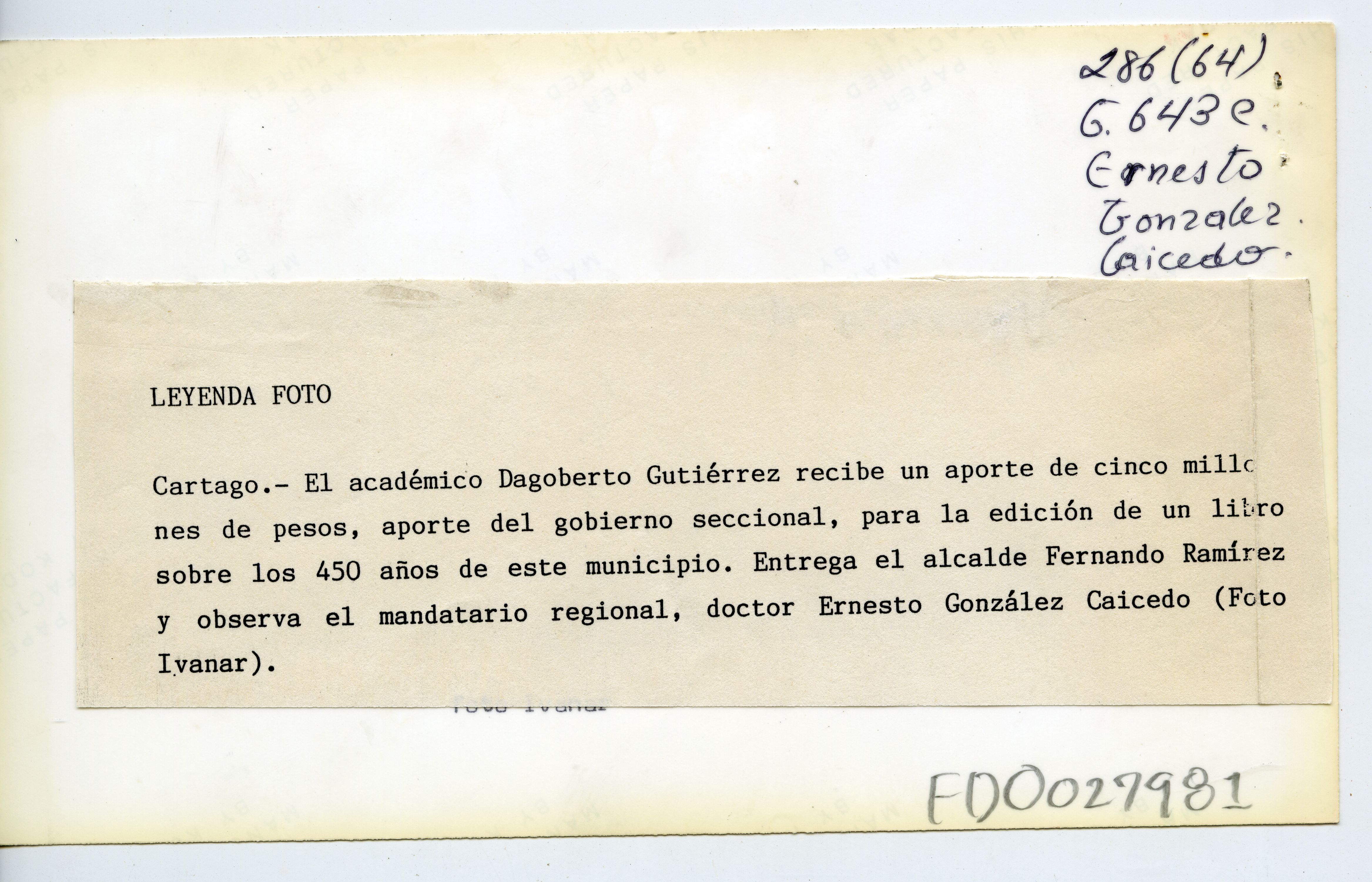 Ernesto González Caicedo, El academico Dagoberto Gutiérrez y al alcande Fernado Ramírez