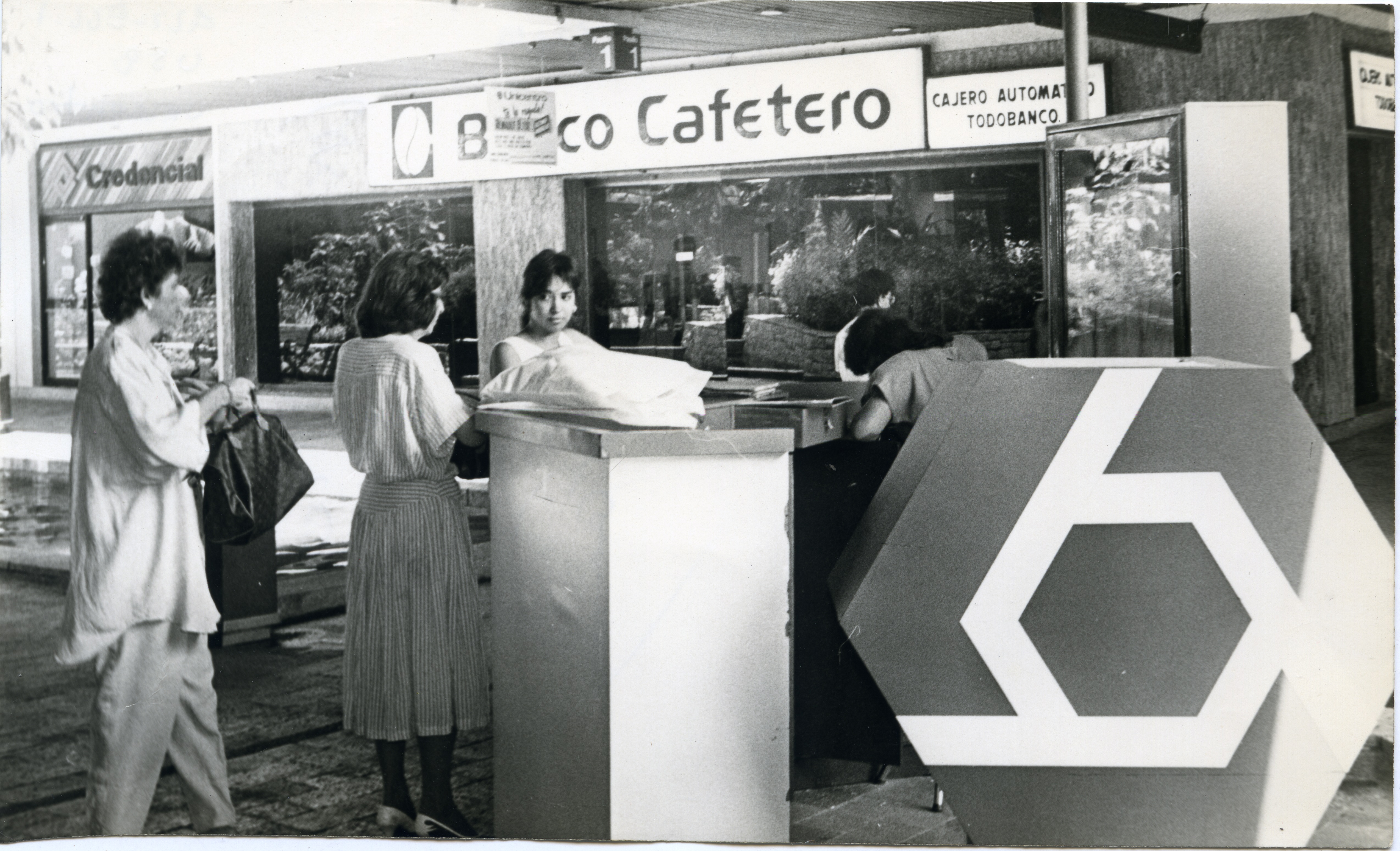 Se observa lo que parece ser el punto de información del centro comercial, en la fotografía se encuentra cuatro (4) mujeres