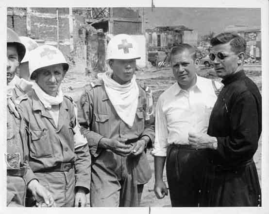 Corresponsales extranjeros, Sacerdote Extranjero y miembros de la Cruz Roja en medio del desastre, colaborando a los afectados por la tragedia del 7 de agosto