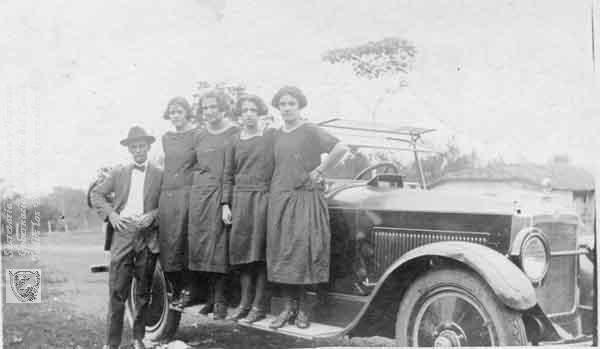 Familia Barberena Chacón, posan junto a uno de los primeros carros que llegaron a la ciudad. Santiago de Cali, 1924