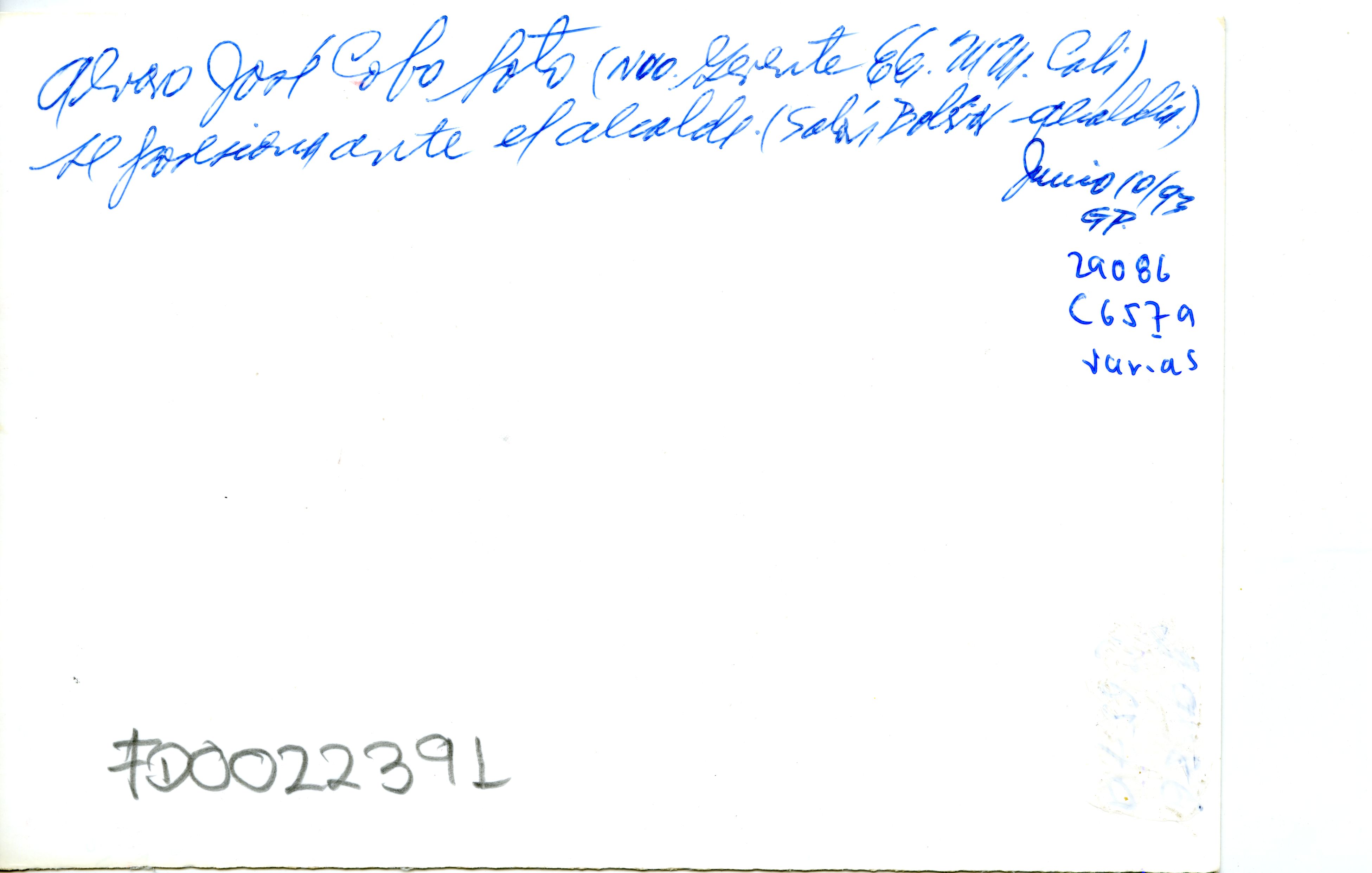 Reverso: Álvaro José Cobo Soto, (nuevo gerente EE. MM de Cali. Se posesiona ante el alcalde. (Salón B. Alcaldía)