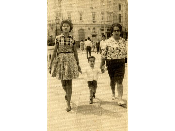 Berta Judith Saavedra y Alfonso Saavedra de paseo por el Puente Ortíz. Santiago de Cali, 1962