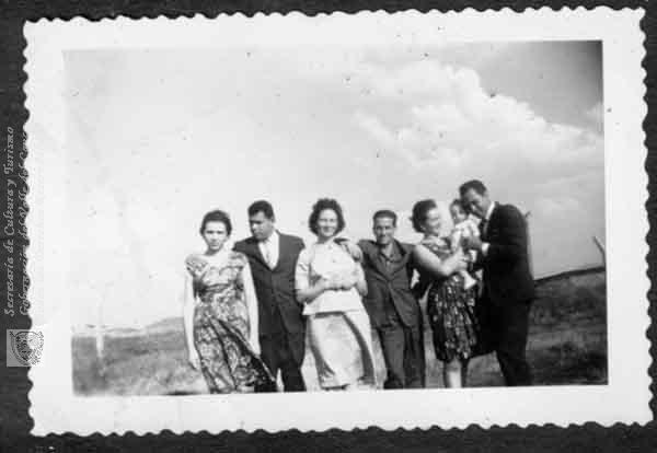 Doralba Aguirre, Alirio Salazar, Orfilia Aguirre, Arturo Gómez, Nohelia Aguirre, Willíam Martínez y la niña Jacqueline Martínez. Cali. C. 1960.