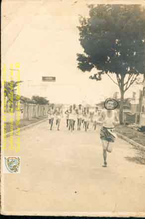Carlos Alberto Troncoso y otros atletas en competencia. Santiago de Cali, C. 1.952