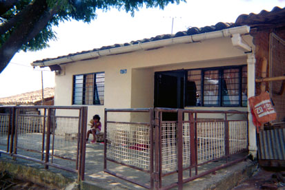 Patiño Valencia, M. L. (2005). Primer plano de fachada de casa con niña abrazando muñeca. Santiago de Cali: Biblioteca Departamental Jorge Garces Borrero.