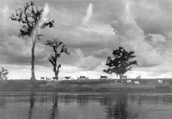 Ganado vacuno pastando en las riveras del río Cauca. Santiago de Cali, 1950.