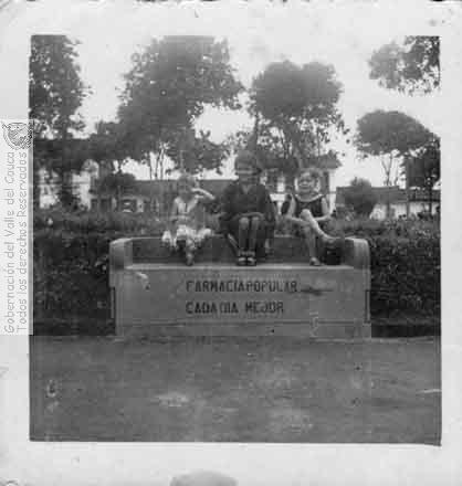 Estella Arias, Rosalba Gómez y Jairo Arias de paseo en el parque uribe uribe de Sevilla. 1938