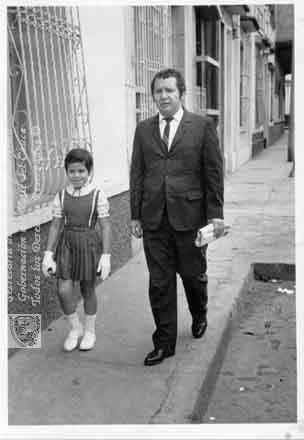 Adriana y Horacio Arce, caminando por las calles de su barrio. Cali. C. 1970.