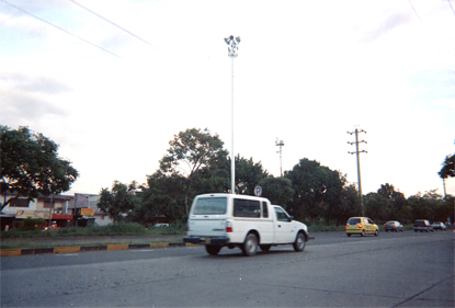 Plano general. En la imagen se puede apreciar una vía pavimentada por la que transitan algunos vehículos. Al fondo varios árboles frondosos. Las condiciones de luz son débiles.