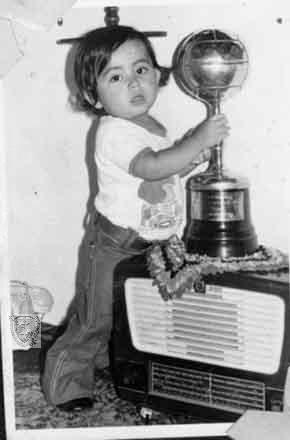 Juan Carlos Gutiérrez junto a la radio. Caicedonia,1974.