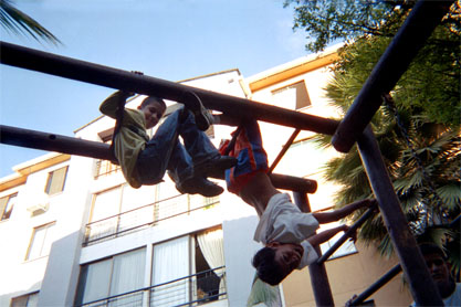 | dc.description | Contrapicado. Niños acróbatas. Formas lineales priman en contexto visual. Fondo edificio. Claroscuro. Alegría desbordante. | spa |