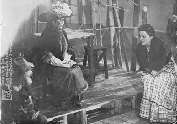 Obra teatral "A la diestra de Dios Padre", de Enrique Buenaventura. Actúan, Bertha Cataño, Fanny Mickey, Mario Ceballos.