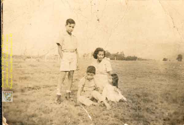 María Agustina García (madre), Alexander García (de pie), Héctor García y María Ruth García, de paseo a la hacienda "Doima"