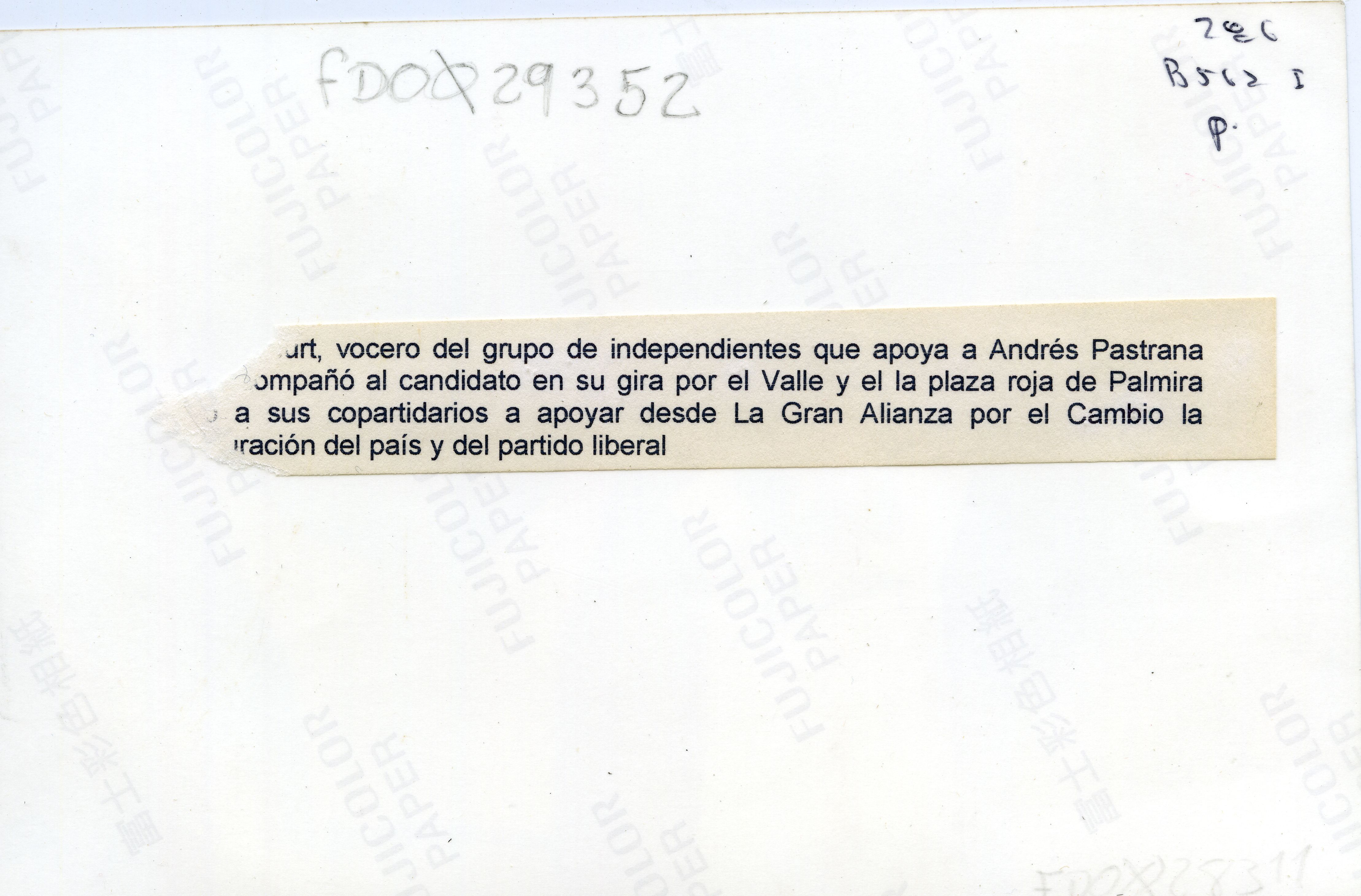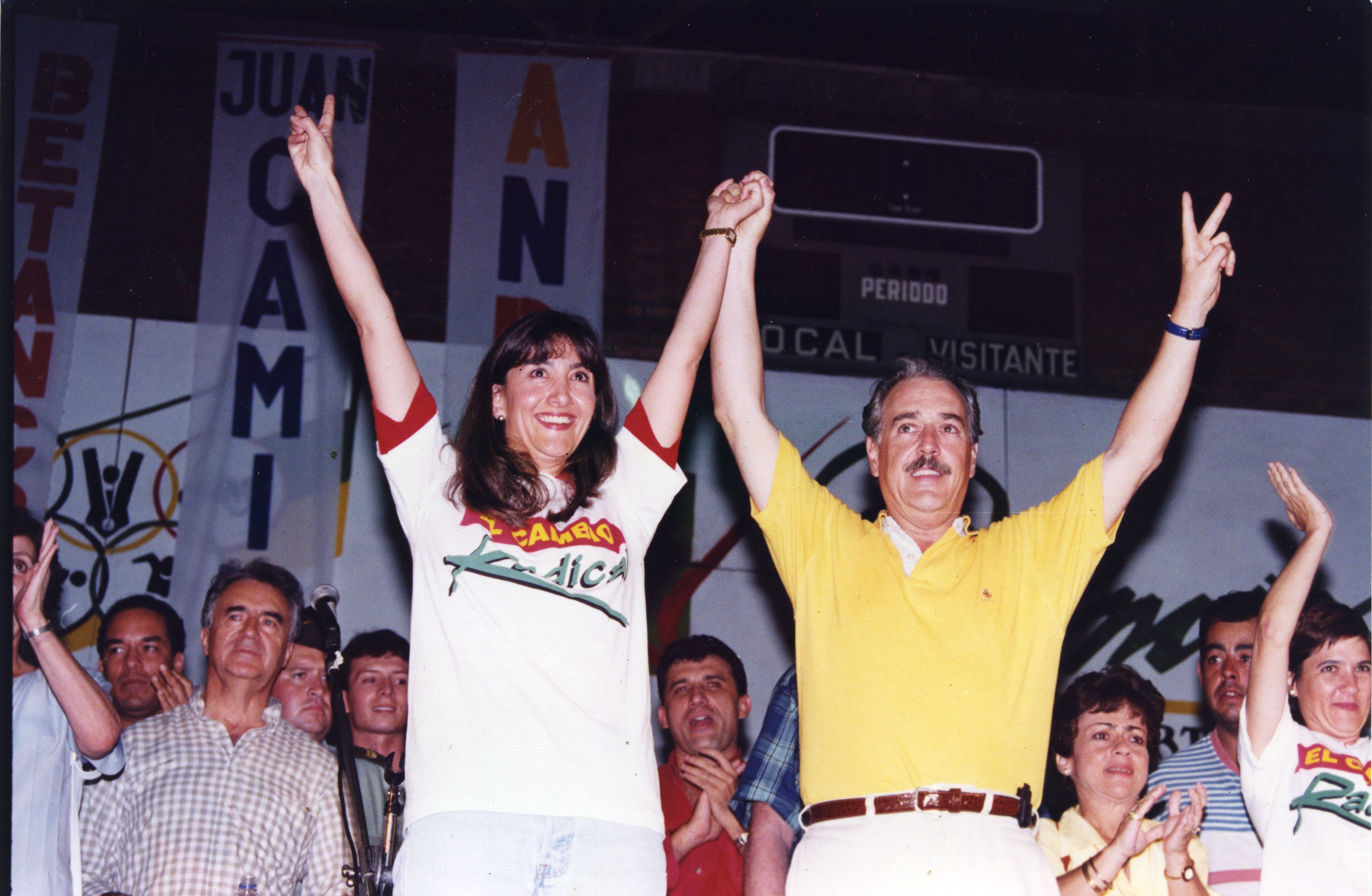 "Íngrid Betancourt Pulecio nació en Bogotá el 25 de diciembre de 1961. Politóloga y Política. Inició su carrera política en la Cámara de Representantes. Fue reconocida por su lucha contra la corrupción política. Apoyó la salida pacífica del conflicto armado de Colombia. Renunció al Partido Liberal tras denunciar la crisis del Proceso 8.000. Se postuló por el Partido verde Oxígeno al Senado en las elecciones legislativas del año 1998, donde fue electa con la primera mayoría nacional. Renunció a su escaño en 2001 para postularse a la presidencia de su país en las elecciones 2002 - 2004. El 23 de febrero de 2002, fue secuestrada cuando se dirigía a la zona de distensión establecida por el regente presidente Andrés Pastrana. Con este acontecimiento, ganaría la solidaridad de muchos seguidores, convirtiéndose en una causa célebre. El 2 de julio de 2008 la Fuerza Pública realizaron una operación de inteligencia militar; resultado de esto, se da su liberación junto con tres contratistas estadounidenses y once miembros del Ejército Nacional que habían permanecido secuestrados, algunos por más de diez años. Después de su liberación, se residencia con su familia a Francia, dedicándose a trabajar por las víctimas del terrorismo. En la foto aparece Ingrid Betancourt con el expresidente Andrés Pastrana en la recta final para el cierre de campaña."