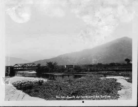 Puente del ferrocarril del Pacífico, sobre el río Cauca. Santiago de Cali, fecha aproximada, 1930.