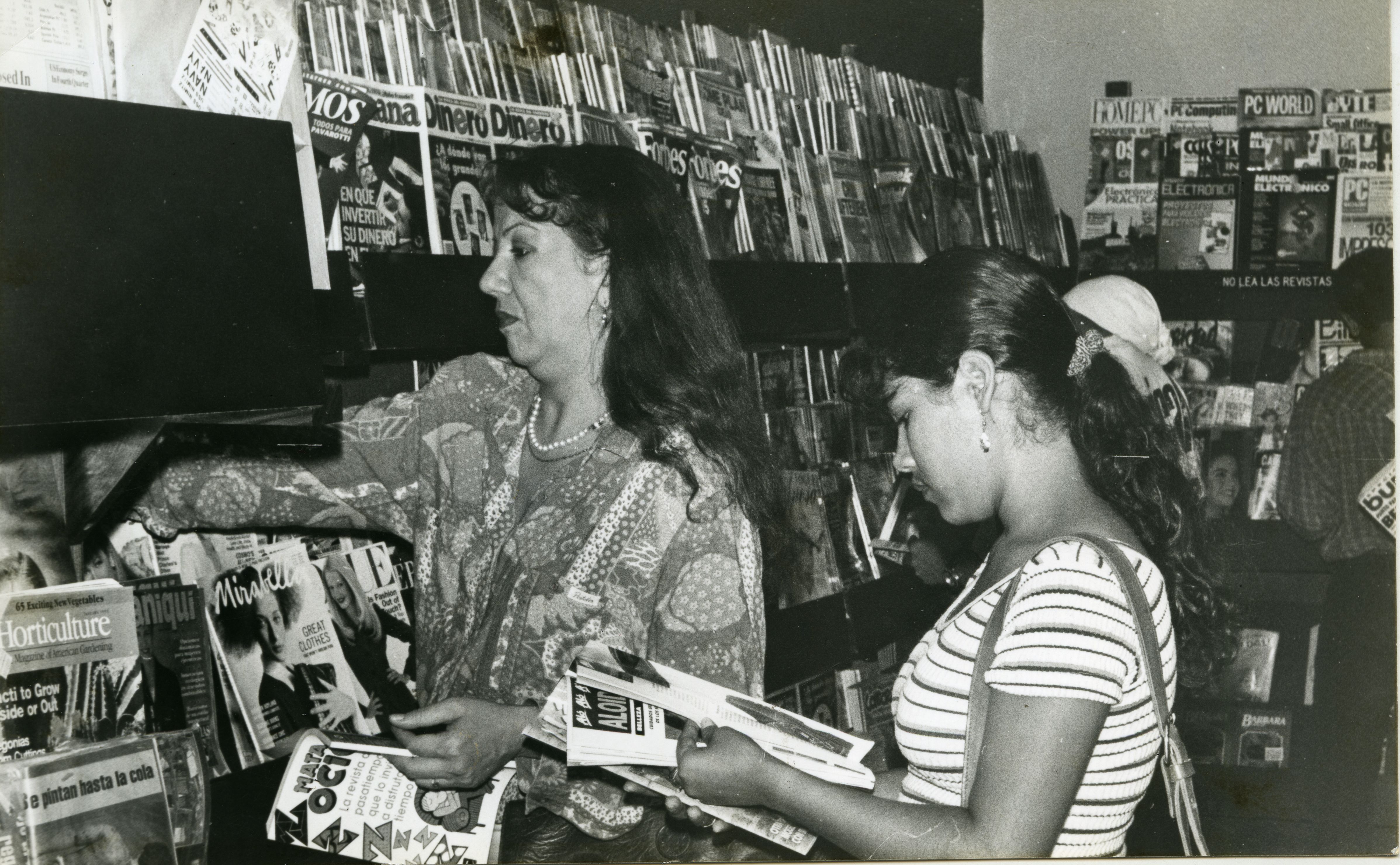En la gráfica se aprecia personas en el interior de la librería. La librería atenas situada en el centro de Cali, su actividad se centra en revistas, papelería, libros, discos nuevos, usados y viejos, tertuliadero