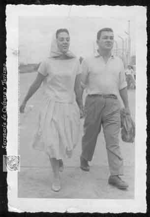 Graciela Perlaza y Víctor Manuel Roldán, caminando por la carrera 5. Cali.1958.