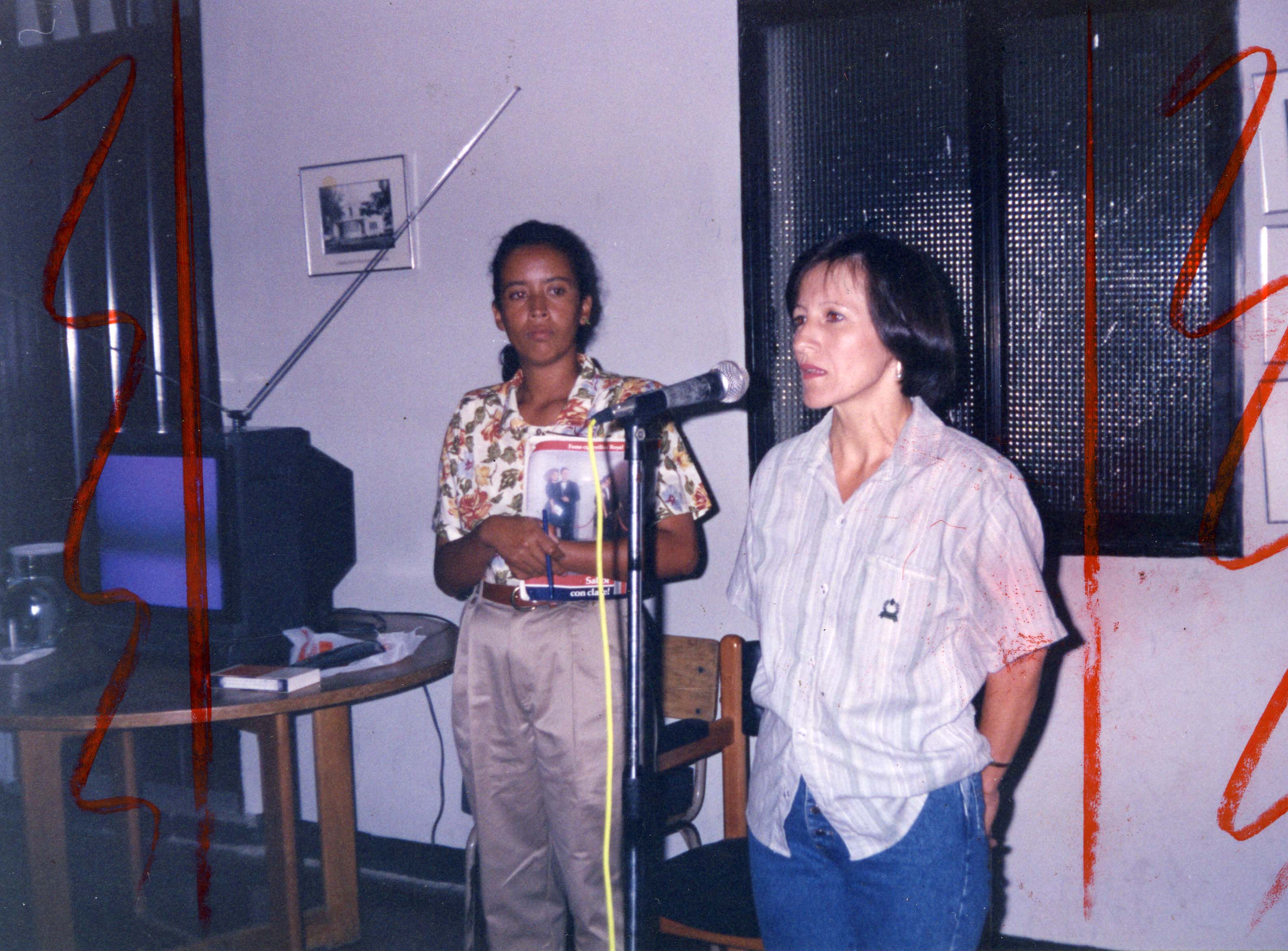 En la Casa de la Cultura, Dora Inés Uchima Morales. Se aprecia en conferencia sobre su experiencia con seres extraterrestres. Hace su presentación la secretaria de Bienestar Social de la Alcaldía Municipal de Tuluá, Judith López.