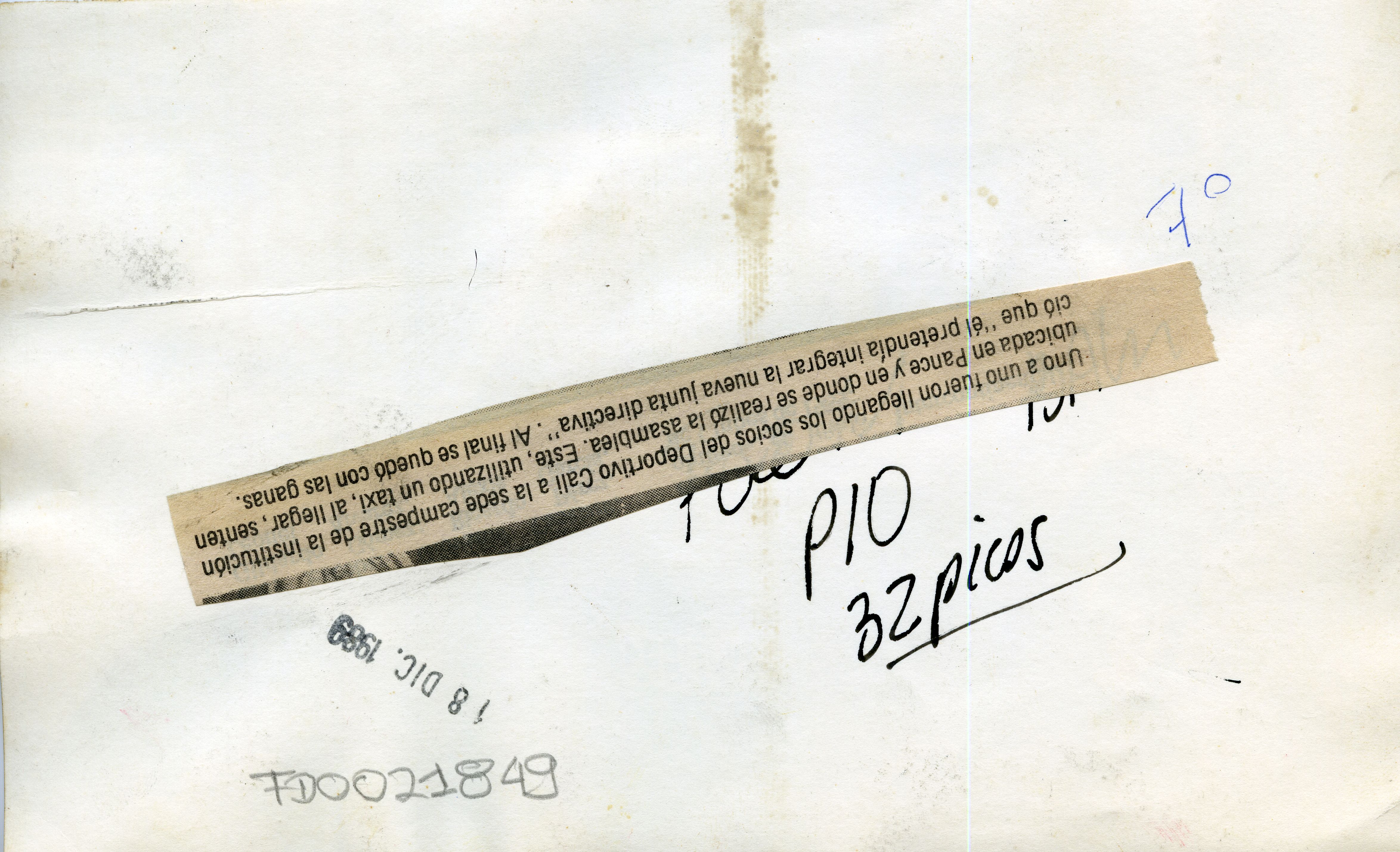 Reverso: Uno a uno fueron llegando los socios del Deportivo Cali a la sede campestre de la institución ubicada en Pance y en donde se realizó la asamblea. Este, utilizando un taxi, al llegar, sentenció que"él pretendía integrar la nueva junta directiva". Al final se quedó con las ganas