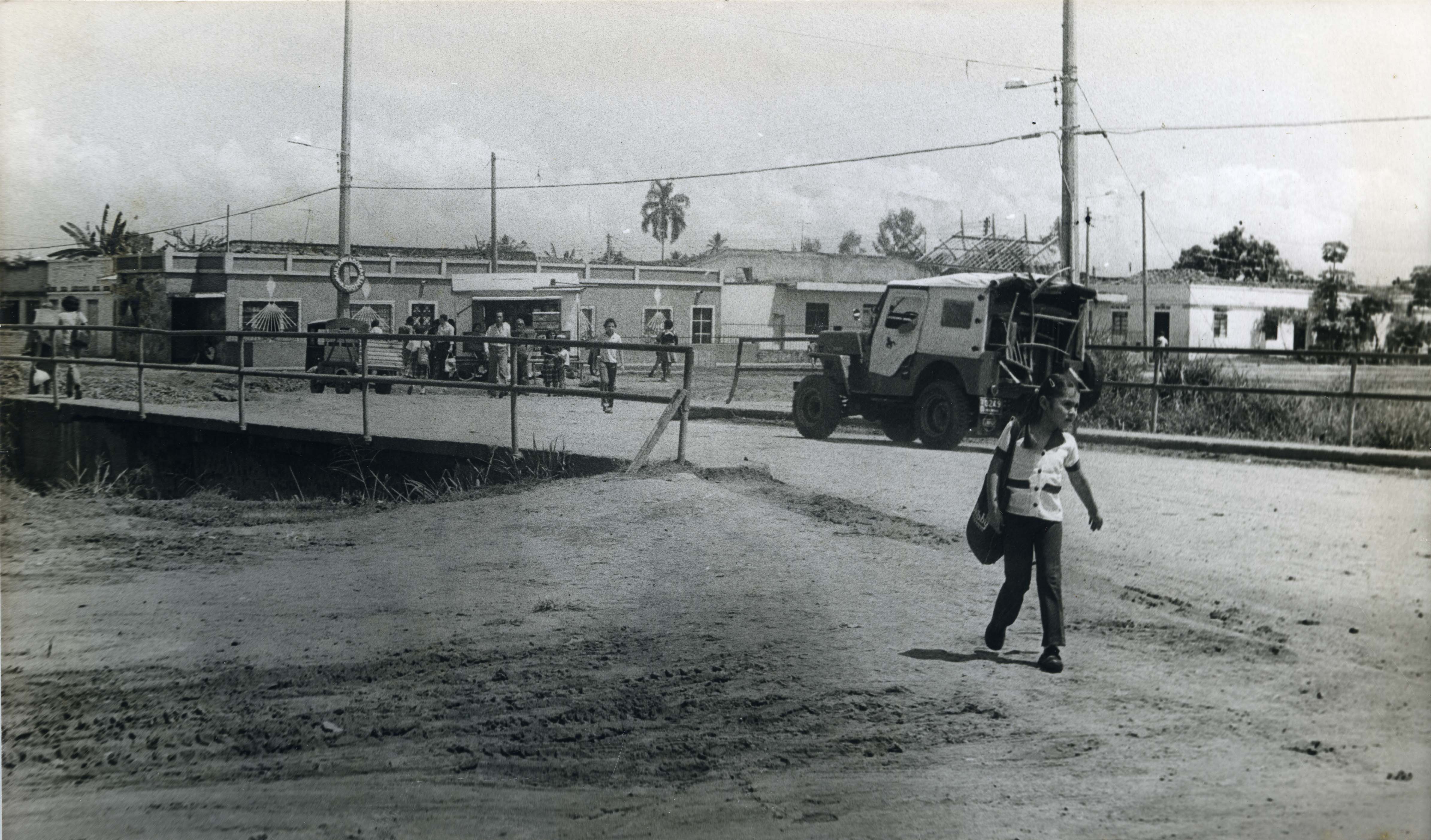 En el pie de foto dice lo siguiente: observamos el puente del barrio Alfonso López. Se aprecia una niña, carros y varias personas por este sector