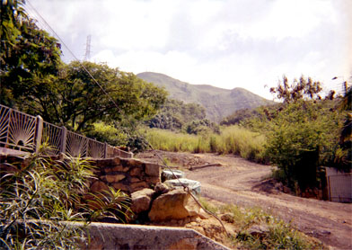 En primer plano planta con superficie rocosa. Línea transversal en costado izquierdo.